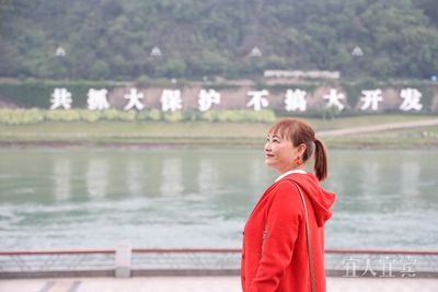 李芳在长江公园散步,对岸“共抓大保护 不搞大开发”标识醒目 罗友莉 摄