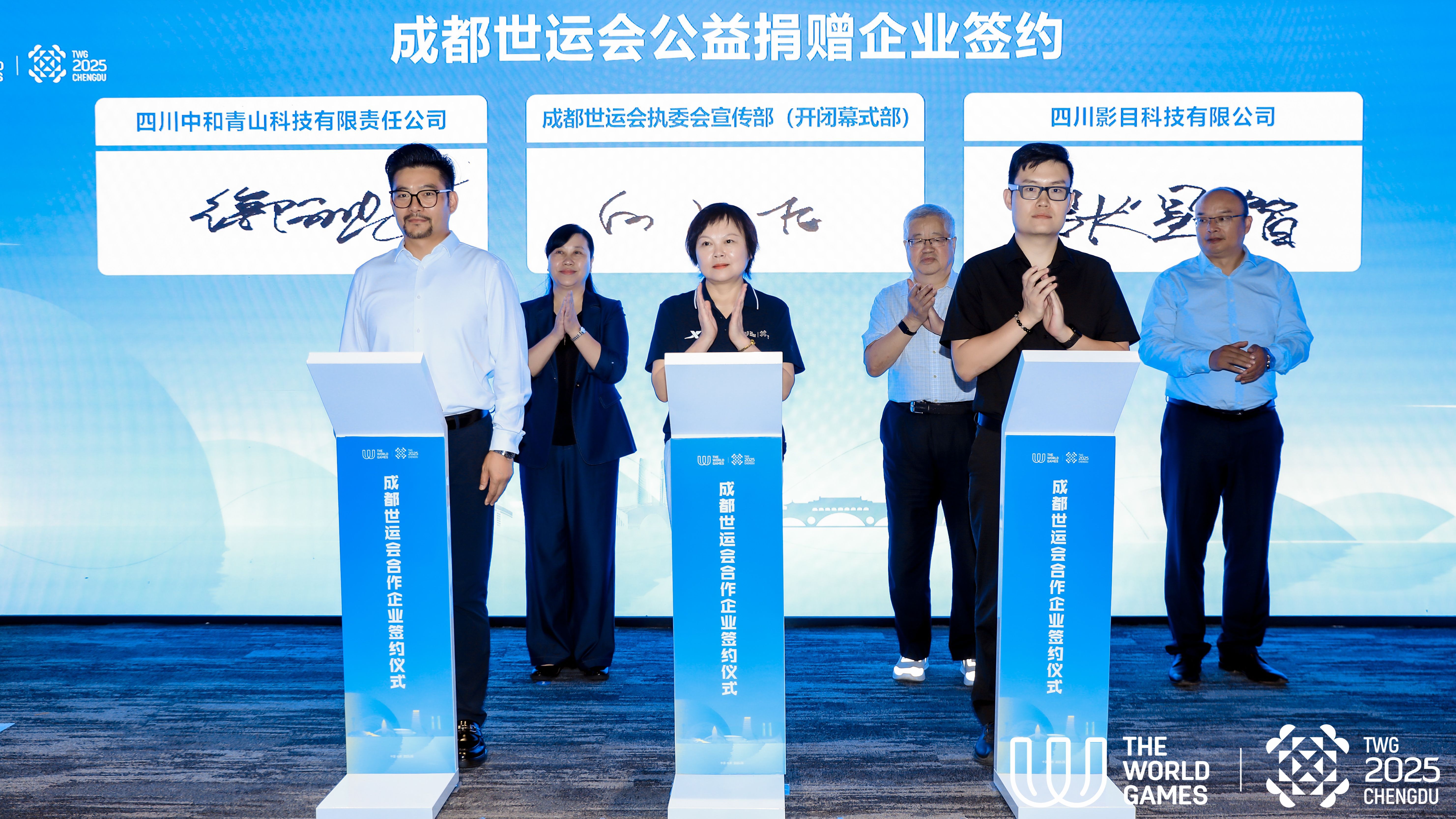 与此同时,成都世运会通过公益捐赠方式进一步拓宽科创企业的参与渠道。现场,成都世运会执委会宣传部(开闭幕式部)与四川影目科技有限公司、四川中和青山科技有限责任公司进行了签约。据了解,两家签约企业将分别向成都世运会的世运村和相关赛区提供AI功能同传翻译眼镜、智慧绿色厕所等设备设施,为来自世界多个地区的运动员及嘉宾带来更多硬核黑科技服务体验。