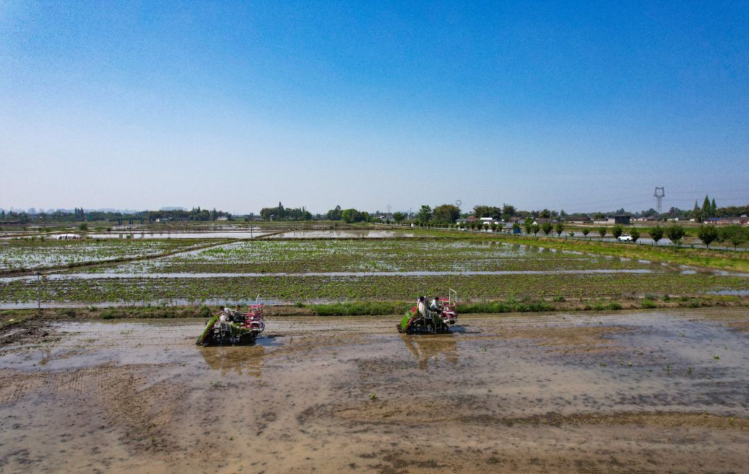 农业机械化助力农业现代化,图为农机合作社组织插秧机作业。眉山融媒记者 廖波 摄