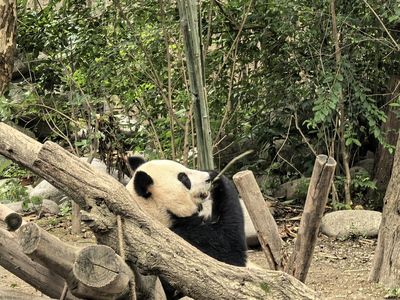 成都大熊猫繁育研究基地月亮产房别墅区内,一只圆滚滚的大熊猫正慵懒地倚着竹梯,用前爪灵活地剥去竹子外层硬皮,“咔哧咔哧”的咀嚼声隔着围栏清晰可闻。它对游客此起彼伏的快门声充耳不闻,只专注于眼前的“竹宴”——这是大熊猫昭美日常的模样。