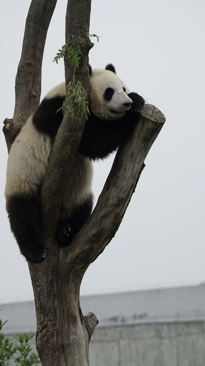 “刚来基地时,昭美作为野生大熊猫,警觉性极高,稍有动静就竖起耳朵观察四周。”饲养员陈波回忆,“哪怕在基地生活了11年,它仍保留着不少野性——比如爱爬树,睡觉总挑高枝。”他笑着说:“我们常开玩笑说‘猫呢?’一抬头,准能在树杈上找到它。”