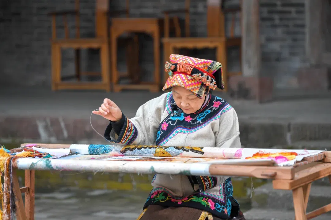 这一模式迅速辐射至四川阿坝、甘孜藏羌地区和成都、邛崃等地,建立了11个社区非遗宣传站,培训人数超10000余名,带动灵活就业人数800余人。在邛崃南宝山镇的羌族移民村,曾经只会种地的绣娘如今已能独立完成《十二月花》系列作品,收入从每月不足千元跃升至3000元以上。