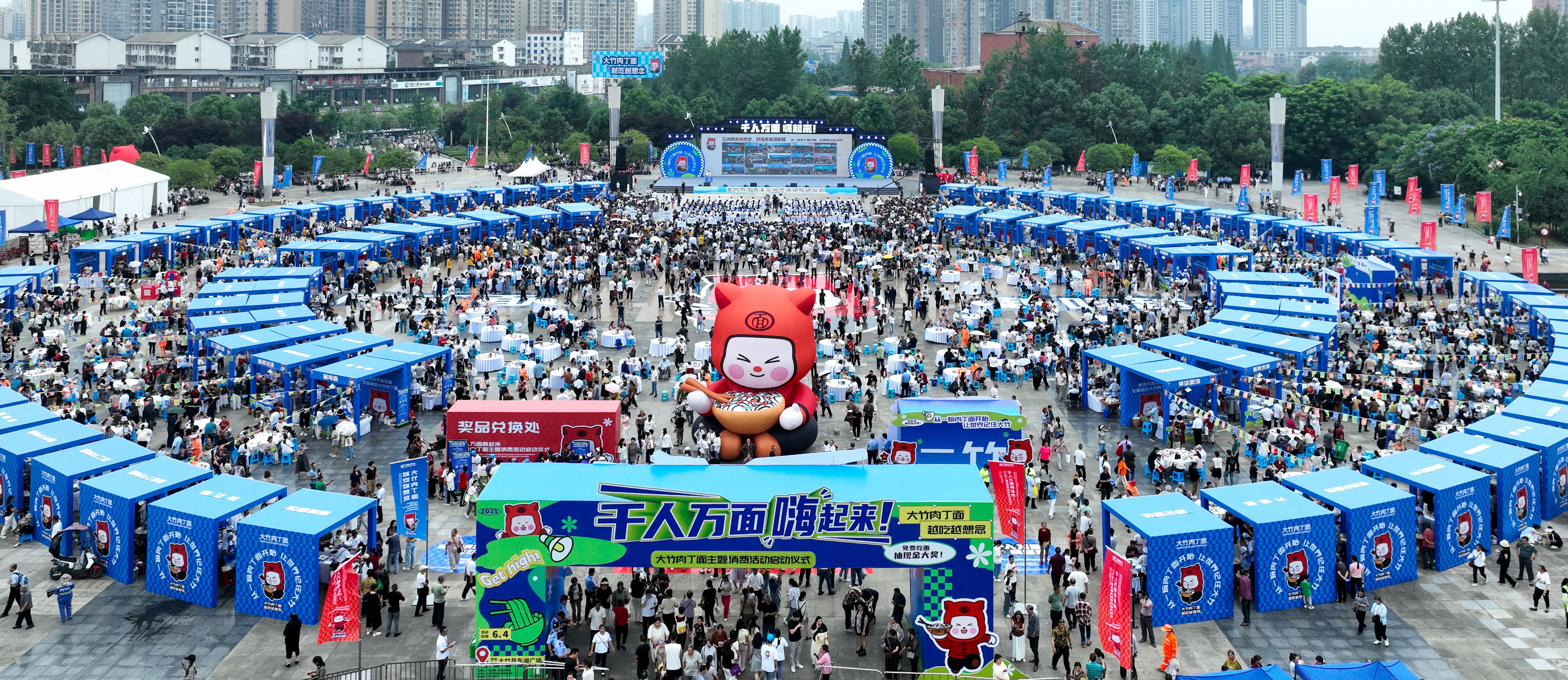 在“千人万面”活动中,大竹县发布区域公用品牌,承诺授权门店严格执行统一标准,让全国食客均能品尝“面条爽滑劲道、肉丁鲜嫩多汁、蔬菜脆嫩爽口、汤底醇厚鲜香”的正宗风味。依托“滋竹尝乐”战略,300余家门店招牌统一焕新,并通过举办美食文化节、发布主题曲MV、参加全国展会等,构建“线上+线下”立体推广矩阵。