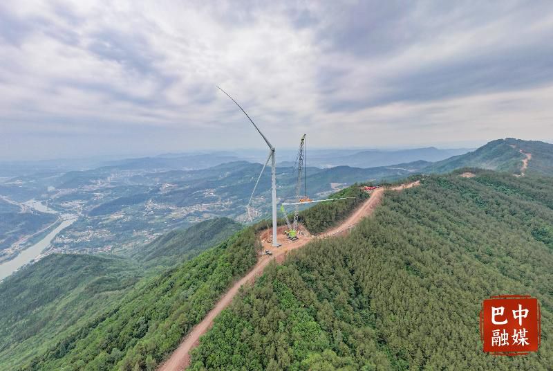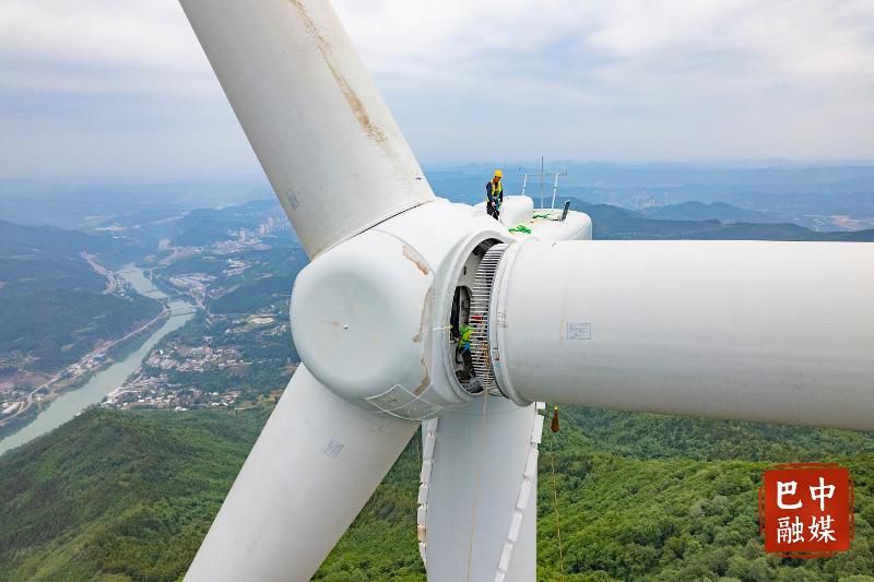 近日,随着通江兴隆风电项目33号风机的最后一支97米长的叶片在空中完美“转体”与风机轮毂平稳精准对接,这台120米高的“大风车”揭开神秘面纱,巍然耸立群山之巅,迈出了将自然伟力转化为绿色电能的重要一步。