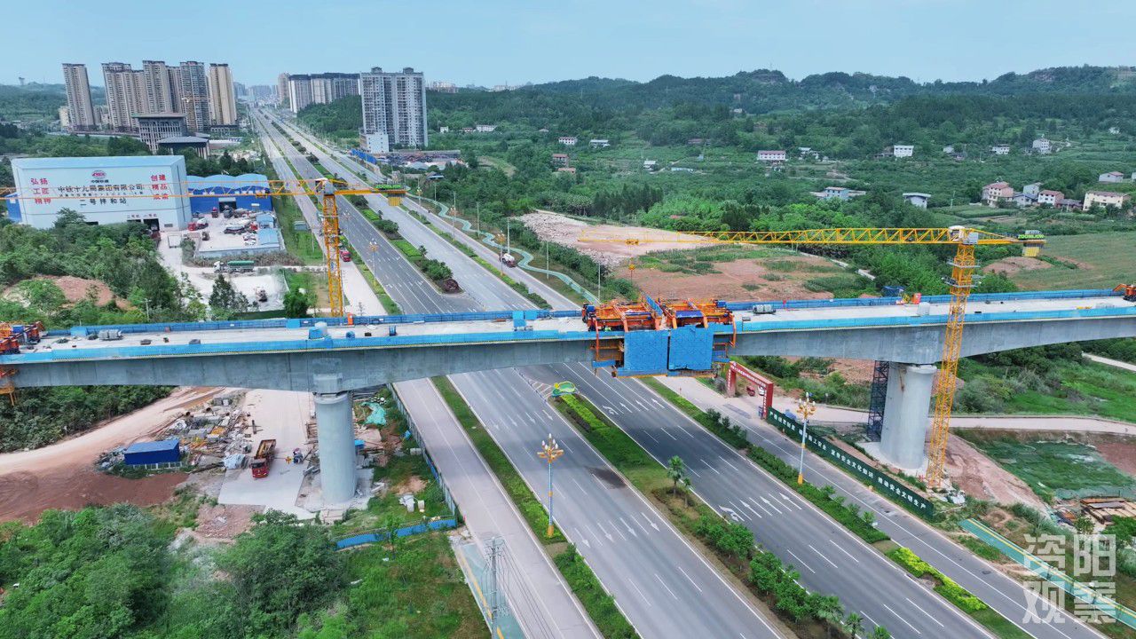 由中铁十九局集团承建的跨安岳大道特大桥是成渝中线高铁四川段八标的重要控制性工程。大桥全长1042.66米,其主跨达100米,横跨车流密集的安岳大道,面临管线迁改多、跨度大、交通压力大等难点。为确保桥梁施工顺利推进,项目团队采用220米大跨度连续梁(60米+100米+60米)设计,引入“智能挂篮”施工系统,通过自动化与信息化技术实时监测施工参数,提升安全性与精准度,此次浇筑合龙的连续梁正是这一关键部位。