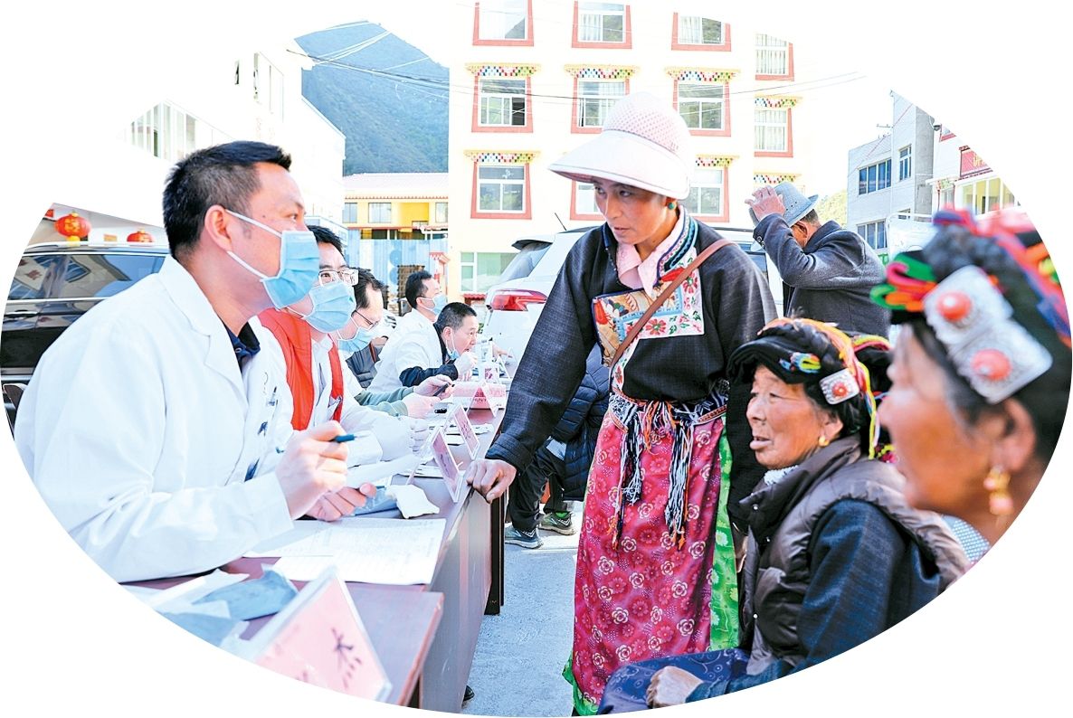 当日,在结斯乡卫生院的小小院落里,藏袍与白大褂在这里交相辉映。市人民医院眼科主任骆贵军比划着手势讲解白内障手术过程;市人民医院口腔科副主任田志江托着一名孩子的下巴检查龋齿;市人民医院心内科副主任陈元国耐心地为老人听诊和测量血压……当日的义诊中,超200名当地群众接受了免费检查,200余份健康资料被领取一空。