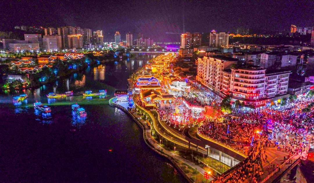 5月31日晚,恩阳河畔鼓乐齐鸣,非遗烟花璀璨绽放,一场“古今交响”拉开街区帷幕。