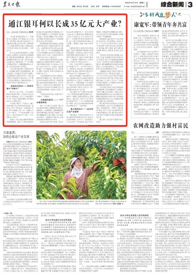 “段木银耳强品牌,木屑银耳深加工。”这是通江银耳产业的战略思路。通江县制定了打造银耳百亿级产业集群,争创国家级产业园区的目标。目前,通江银耳已实现综合产值35亿元,当下重点任务是在精深加工领域实现突破,力争2027年综合产值突破50亿元。