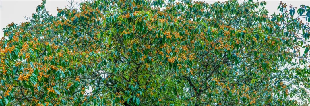 更吸引人的是树上的枇杷。枝头缀满硬币大小的果实,为这翠绿的树冠增添勃勃生机。