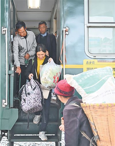 乡亲们在上下慢火车。周泽平摄