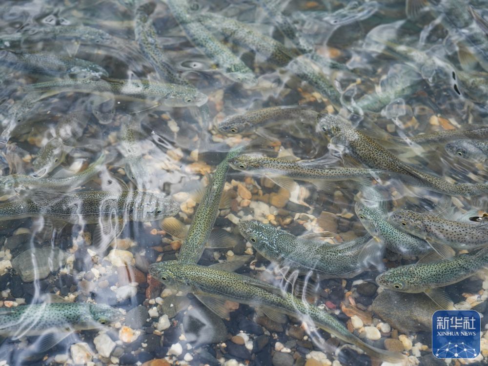 ↑这是6月21日在玉龙拉措湖畔拍摄的软刺裸裂尻鱼。新华社记者 王曦 摄