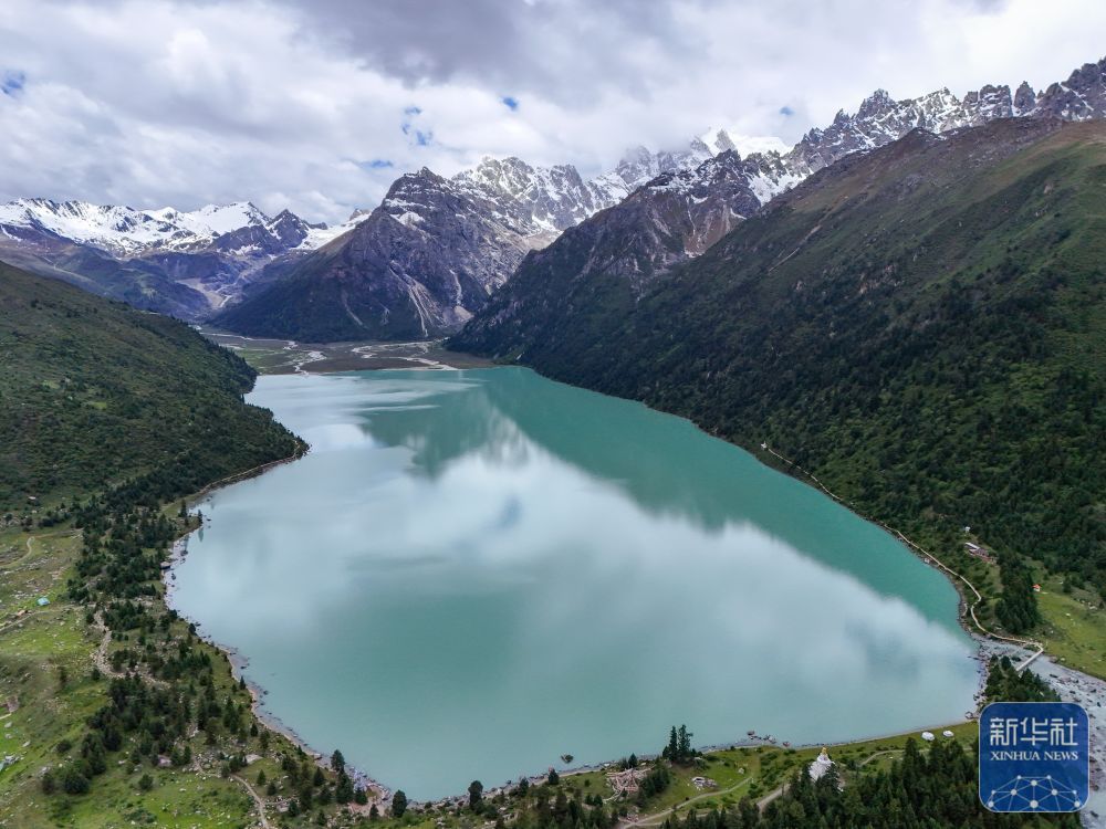 ↑这是6月21日拍摄的玉龙拉措风光(无人机照片)。新华社记者 王曦 摄