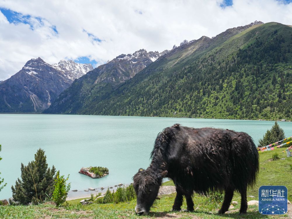 ↑这是6月21日拍摄的玉龙拉措风光。新华社记者 王曦 摄