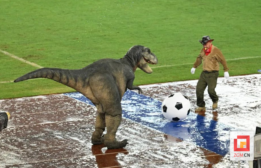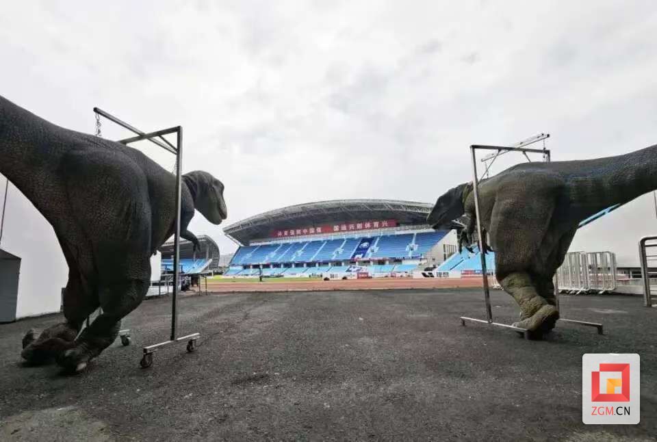 据了解,去年,常州中华恐龙园向自贡亘古龙腾科技有限公司购买了一批仿真恐龙。这些逼真巨兽平时在园区里默默守候,此次集体“出差”便将侏罗纪时代的震撼气息带到了球场上。