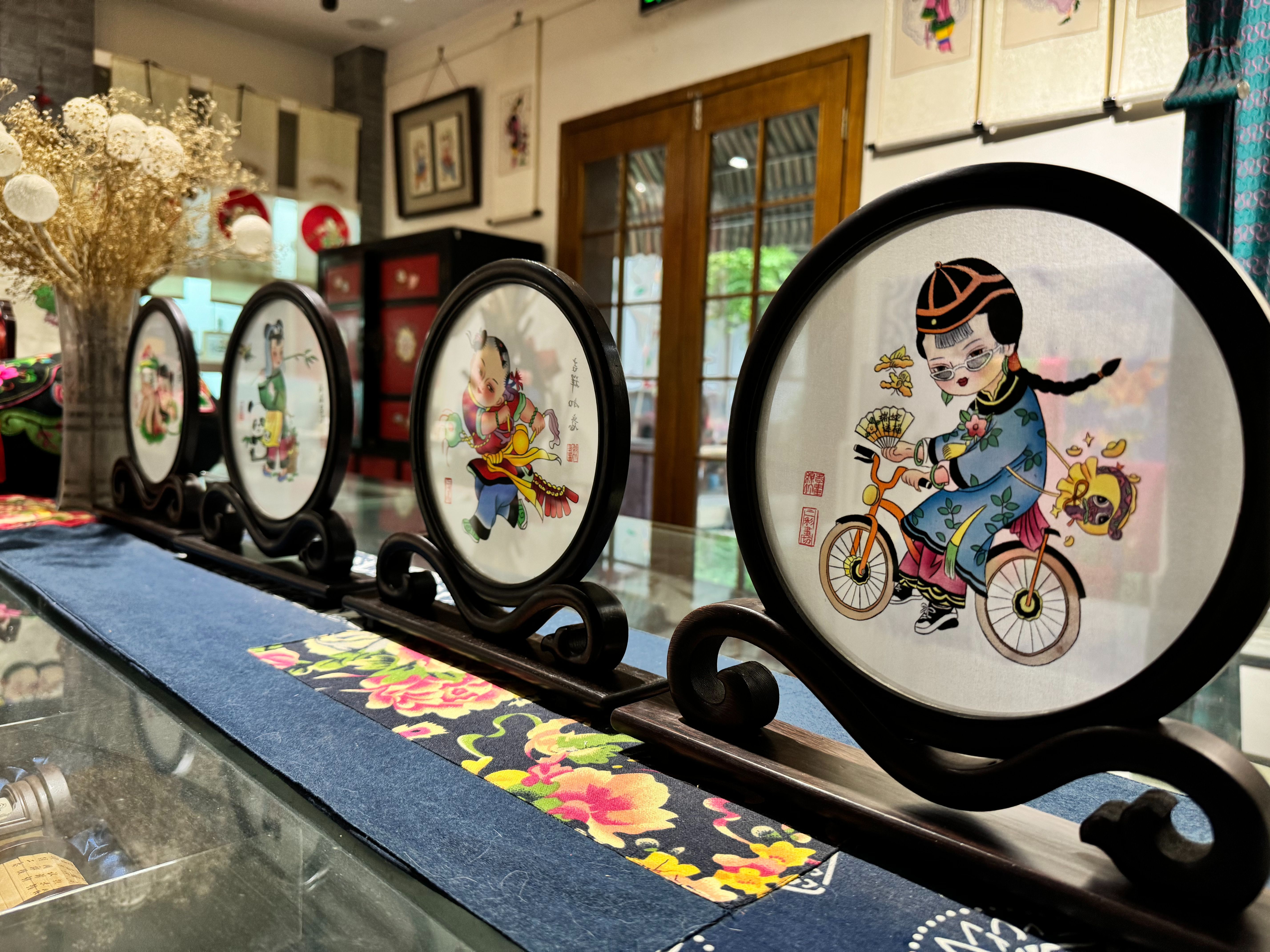 走进年画村,犹如置身艺术的海洋。传统川西民居建筑错落有致,在白墙青瓦之上,一幅幅色彩斑斓、题材丰富的绵竹年画映入眼帘,民俗文化气息浓郁。绵竹市孝德镇副镇长李玥航告诉记者,中国年画博物馆即将入驻年画村,博物馆内将展出中国四大年画,“以这样的业态来辐射年画街坊等区域,后期我们会引入年轻的主理人,把年画街坊打造成为一个拥有新兴业态的商业区。”