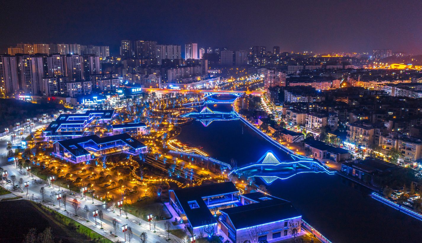 镶嵌在西溪河畔的夜明珠賨城里,被誉为“广安版太古里”。这个新的城市会客厅,集娱乐休闲、餐饮市集、非遗展演于一体,并非商业堆砌,而是以水为脉、以文为魂的立体空间叙事。去年国庆节,賨城里与金月驿站、儿童乐园、生态湿地岛、人行流光桥等特色亮点项目精彩呈现,一带、七桥、多点的空间层面,将绿轴南北融合串联,共同圈“粉”。