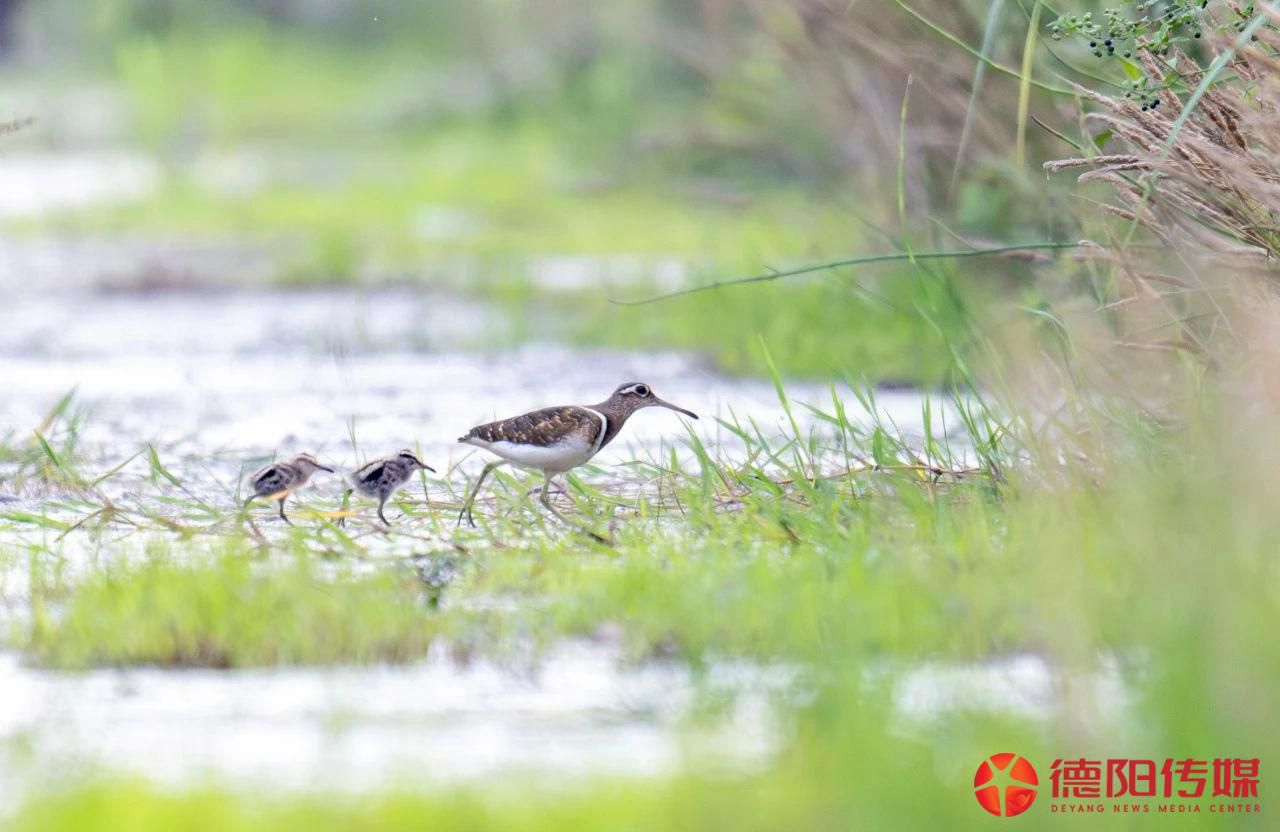 “连国家二级保护动物彩鹬都来德阳旌湖育雏。运气好的话,不仅能够看到彩鹬带着雏鸟在鸟岛上漫步觅食,还可能看到水雉、棉凫、蓝胸秧鸡等少见的鸟类。”德阳市观鸟爱鸟志愿者协会副会长李涛告诉记者,小雏鸟跟在雌鸟身后觅食,萌态十足,成为了鸟友和摄影师镜头里的“明星宝宝”。