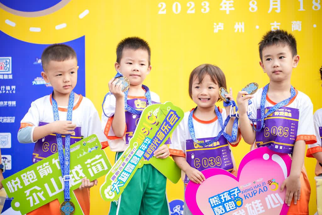 此外,配套赛事熊孩子酷跑,从起跑仪式邀请的“泸州好少年”嘉宾到参赛选手全是3-17岁的未成年人,让整个大雄村都充满着“希望和生命力”。