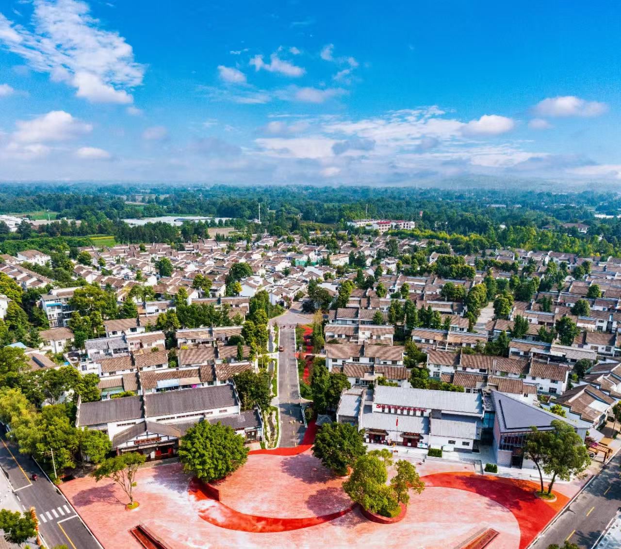 有了坚实的资金保障,战旗村开启新一轮环境升级工程,新增绿地面积、扩建文化广场……经过一段时间的村容村貌改造,战旗村焕发新颜。值得一提的是,去年5月,自村级建制调整后,战旗村便启动战旗新村建设计划。通过引导散居村民适度集中居住,整合盘活土地资源,全力打造宜居宜业和美乡村。走进战旗新村项目建设区域,远远望去,一栋栋造型雅致的别墅拔地而起,整齐划一地排列于规划区域内,成为一道亮丽的风景线。
