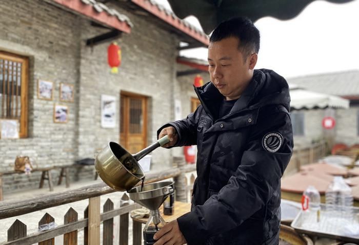 这两年,他依托抖音直播,将古法酱油制作工艺搬到镜头前,展现传统酿造的每一道工序。“一场直播最高收获近2万点赞,很多顾客都没见过酱油酿造的过程,觉得很新鲜。”刘畅介绍,随着直播热度攀升,许多网友专程来到村里品尝。醇厚鲜香的酱油风味让食客们赞不绝口,大家自发在亲友间分享推荐。这种“线上引流+线下体验+口碑传播”的创新营销模式持续发力,酱园坊的人气与日俱增,生意愈发红火,最高一年经营额突破30万元。