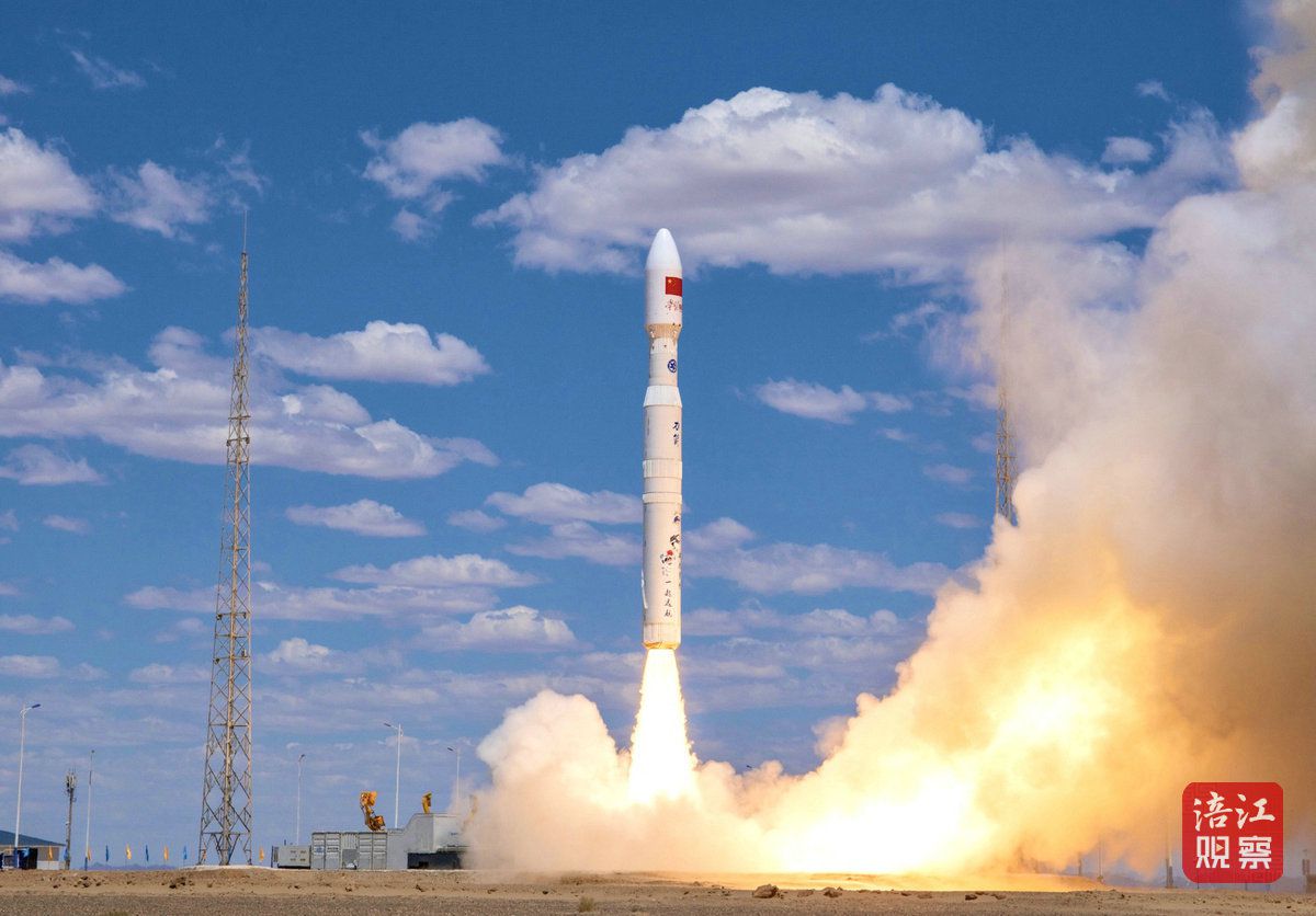 搭载着“绵阳星座”首发星“涪城一号”卫星的运载火箭点火升空
