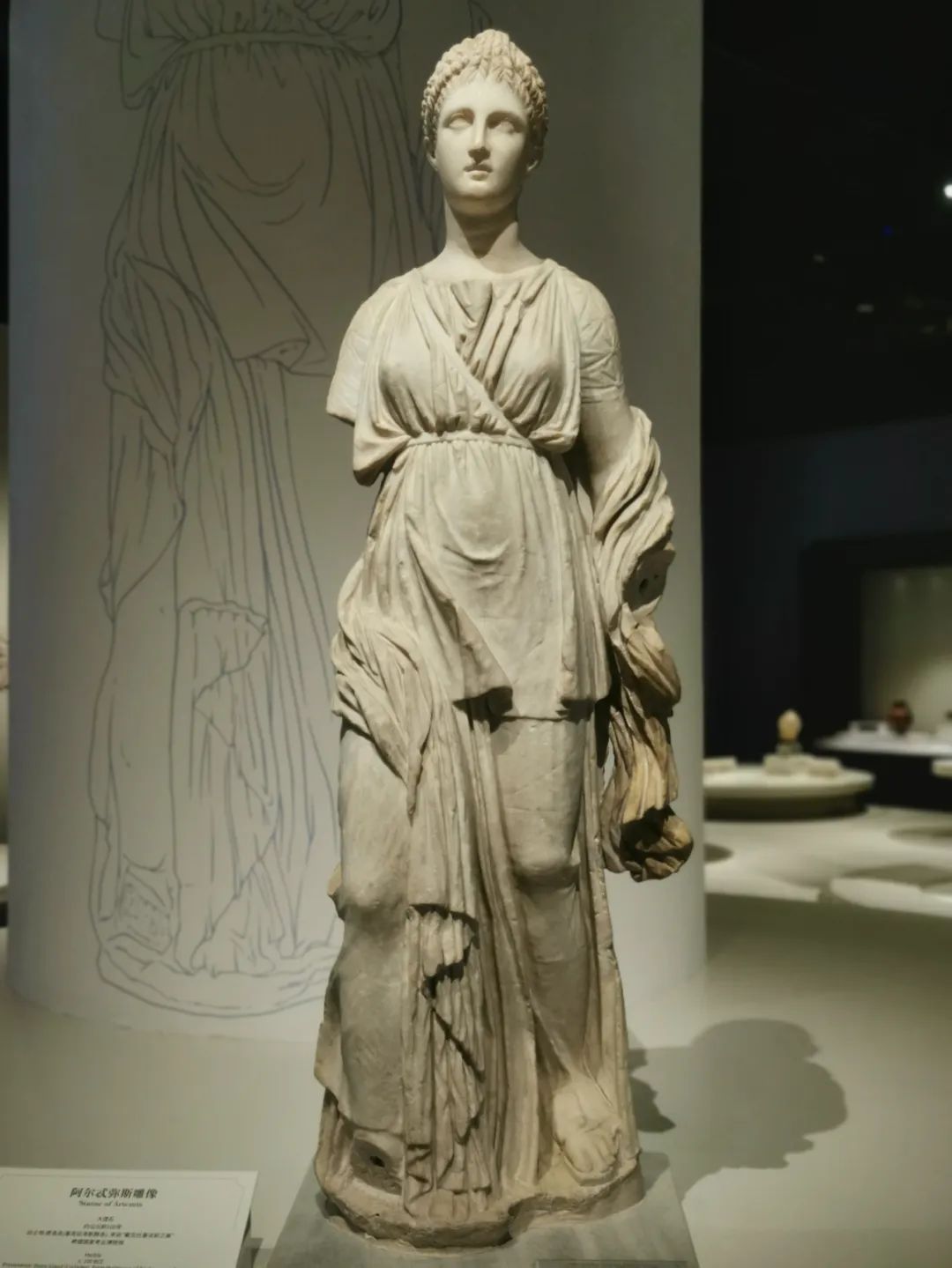 三星堆黄金面具的褶皱印记,与“阿伽门农”国王面具的冷峻光泽交相辉映;青铜大立人的服饰纹理,与阿尔忒弥斯雕像的光洁肌理华彩共彰……一场酝酿了千年的文明对话,在青铜神树的注视下悄然展开。
