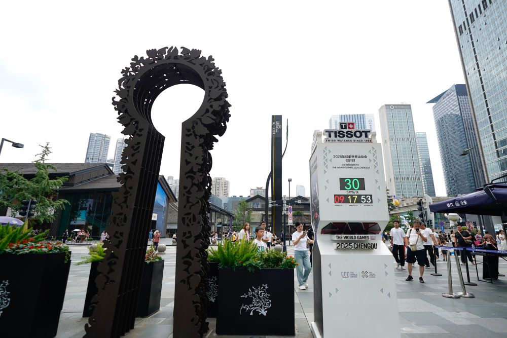 7月8日在成都太古里拍摄的世运会倒计时牌(胥冰洁 摄)