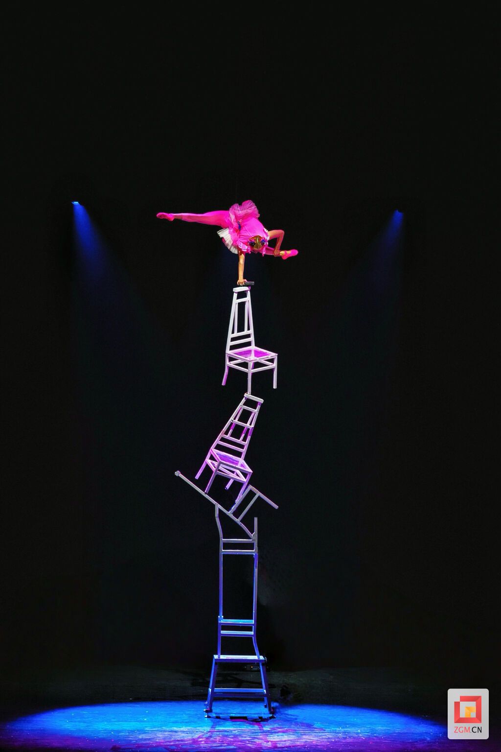 在8分钟的演出时间里,郭瑶姚在层层叠起的高椅上展现倒立技巧,完成了一系列高难度动作。她将单手倒立力量与软功的美感巧妙融合,呈现出惊险又美妙的视觉盛宴。