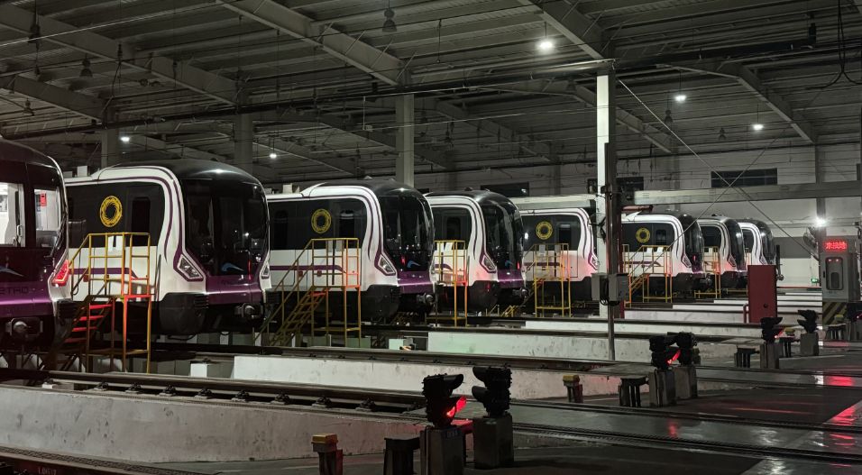 隧道联通的另一端是地铁的“停车场”。送走末班乘客后,列车驶向1号线红花堰车辆段。每晚约26列地铁列车陆续返回接受全面“体检”。工作人员需要在短短几小时内完成列车检修、列车保洁等工作。“夜间车辆检修是地铁运营的关键环节,目的是避免对日间乘客出行造成影响。许多检修、调试任务只能安排在夜间,以减少运营干扰。”冯旭杰介绍道。