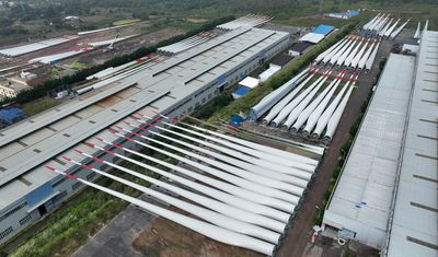 位于德昌县工业园区的东方电气风电(凉山)有限公司是目前西南片区功能最全的高原低风速风电机组生产基地、研发基地,业务涵盖风电叶片、主机生产制造和机组运维服务。图为一排排制成的叶片正待运往各地。凉山州新闻传媒中心记者 钟源 摄
