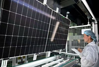 北理同创(会东)新材料有限公司光伏组件生产车间内,工人正在检查光伏组件。凉山州新闻传媒中心记者 钟源 摄