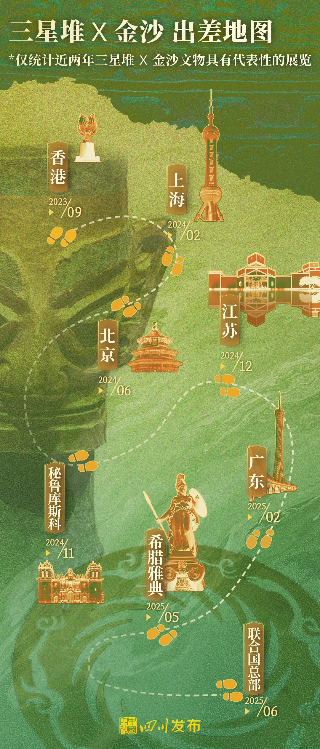 但在四川,三星堆和金沙遗址这对“出差搭子”断层出道,文物“出差”次数遥遥领先。