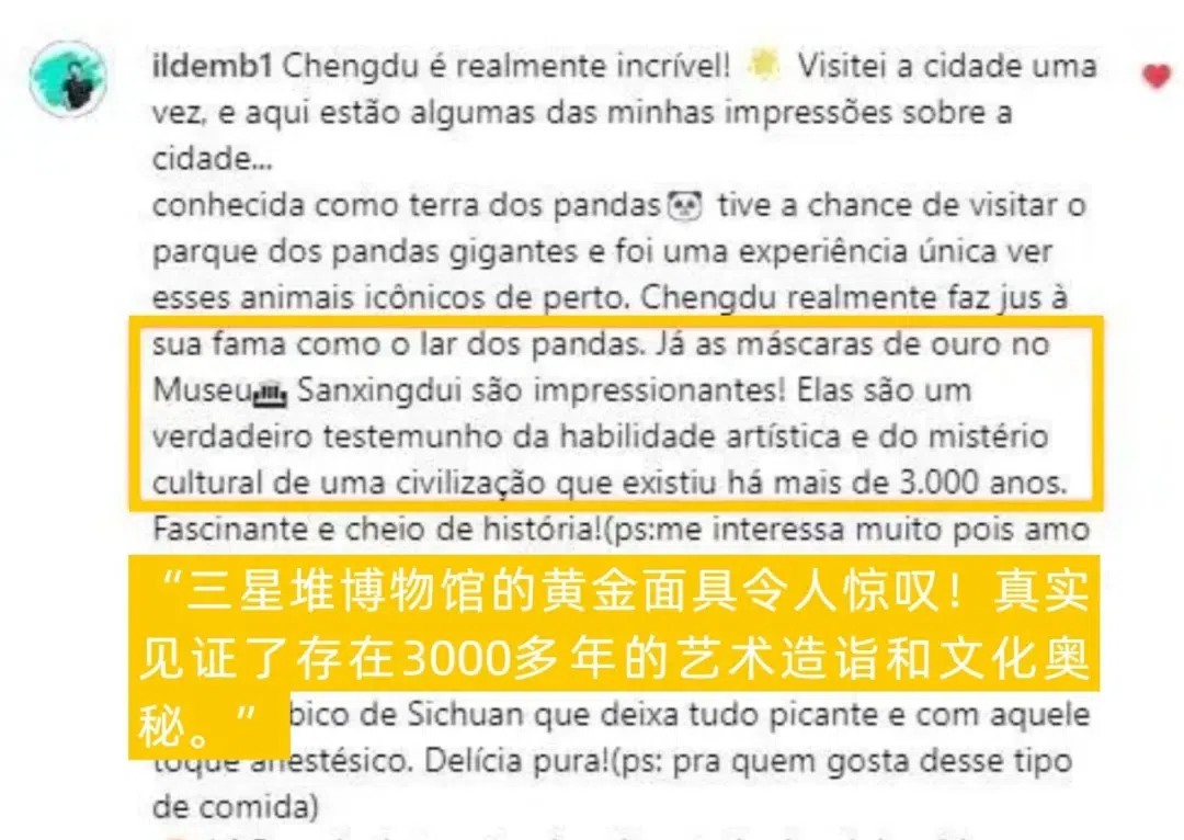 今年5月,百万粉丝的巴西网红在Instagram上发布“三星堆—金沙文化”盲盒开箱视频,一天之内收到了500多封葡语“情书”,字里行间充满对古蜀文明的向往与惊叹。