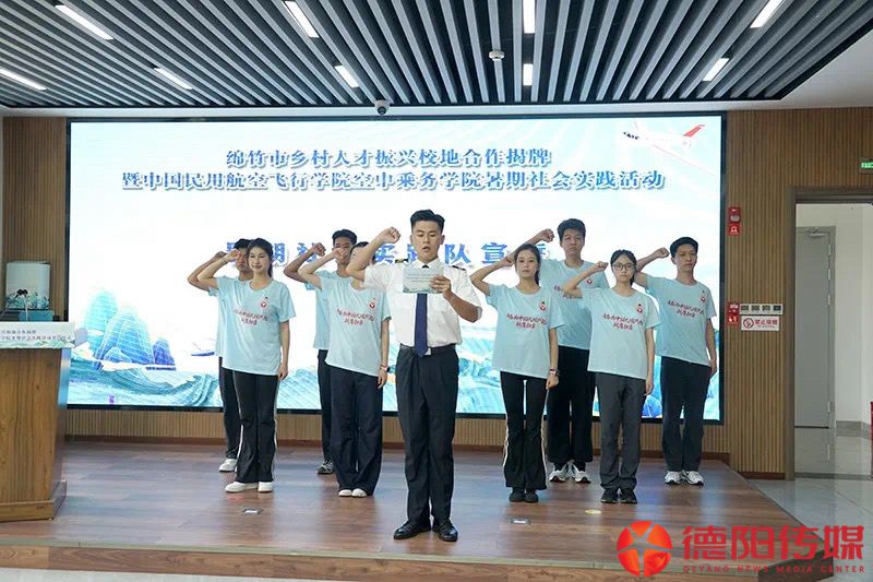 今年7月初,绵竹市乡村人才振兴校地合作揭牌暨中国民用航空飞行学院空中乘务学院暑期社会实践活动在九龙镇正式开营,“小客舱·大视界”科普基地与国际中文教育实习基地也在此正式揭牌,这意味着,中飞院与九龙镇的校地合作将更进一步,双方也将更深入地推进高校智力资源与乡村实践深度耦合。