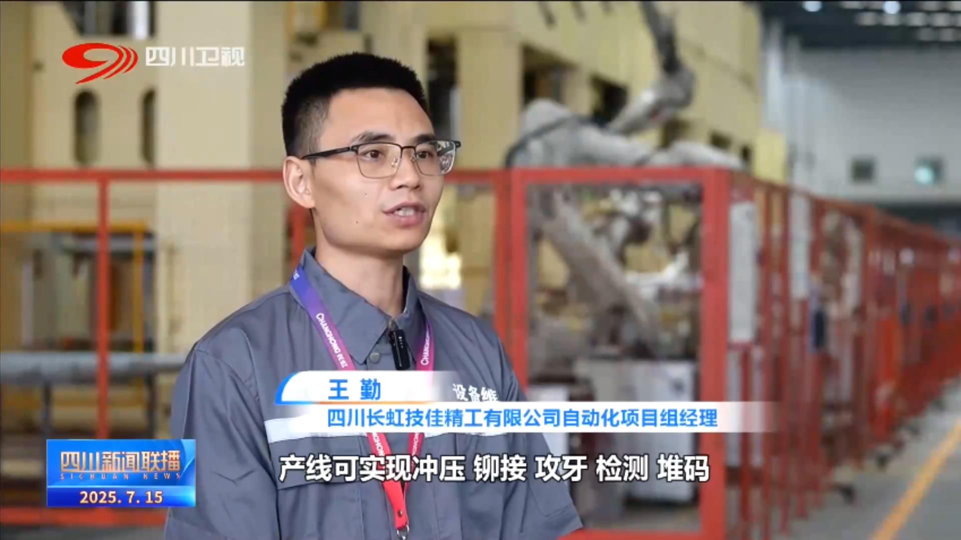 四川长虹技佳精工有限公司自动化项目组经理 王勤:产线可实现冲压、铆接、攻牙、检测、堆码全工序一体化自动加工工艺技术,解决了电视背板大尺寸生产配套瓶颈。实现自动检测之后,我们的检测合格率达到100%,效率提升30%。
