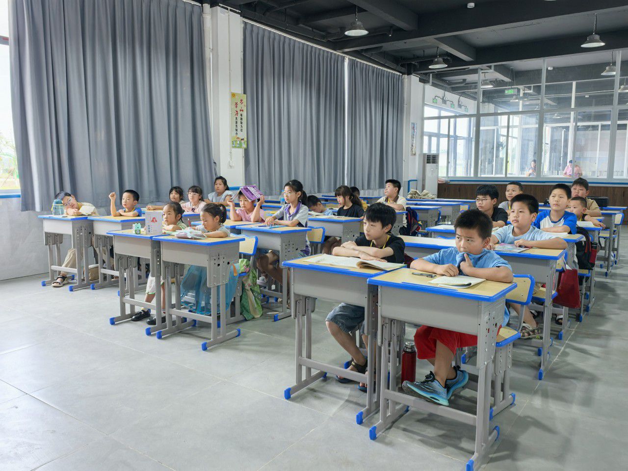 “厂房课堂”里认真听课的孩子们。