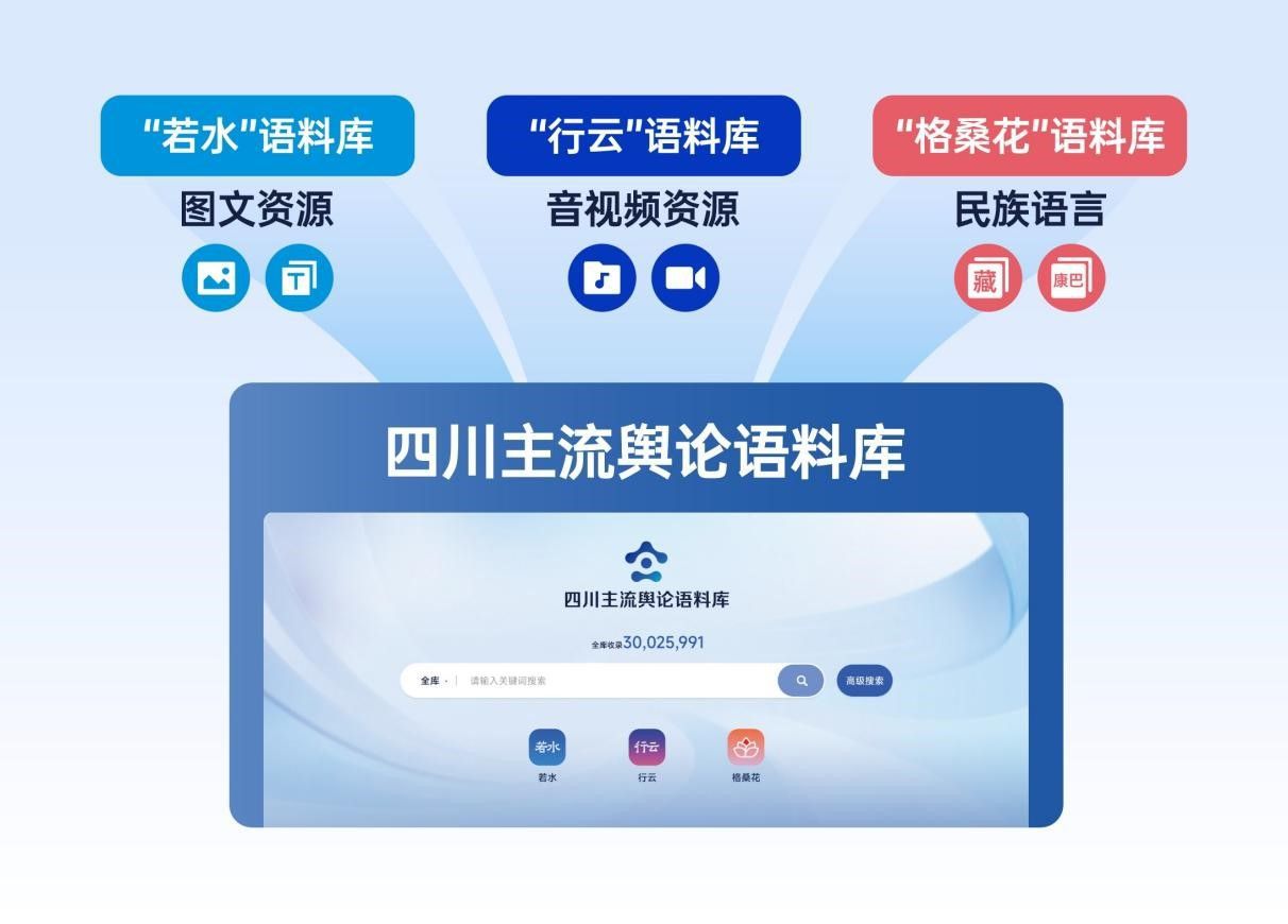 据了解,“四川主流舆论语料库”由一个主库和三个子库组成,其中主库是以天府融媒联合体内容资源为主的“四川主流舆论语料库”,三个子库分别是以图文资源为主的“若水”语料库、以音视频资源为主的“行云”语料库和以藏语资源为主的“格桑花”语料库。
