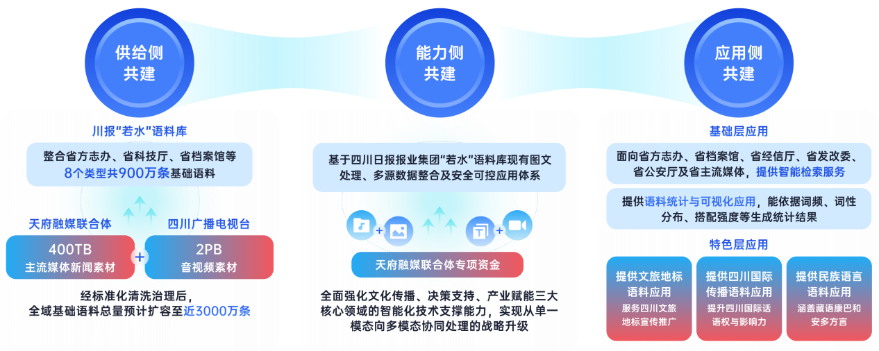 “四川主流舆论语料库”由天府融媒联合体指导组办公室指导,四川日报报业集团、四川广播电视台联合建设,天府融媒联合体成员单位参与,四川日报报业集团“全媒体技术与传播认知四川省重点实验室”和四川广播电视台“视听数据空间智能传播实验室”提供技术支撑,天府融媒(四川)科技有限公司统筹实施。