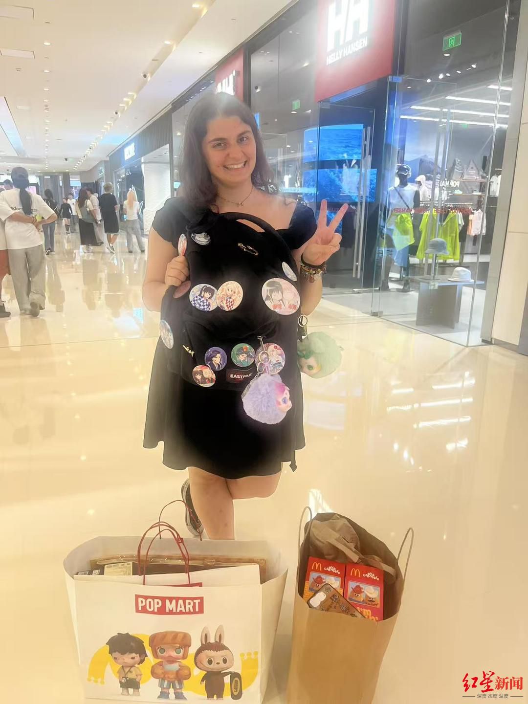 空箱子来,满箱子回成为现实。意大利女孩玛蒂娜(Martina)把中国行第一站选在成都,“我最喜欢的动物就是大熊猫,而成都是大熊猫最出名的城市。”她背着书包,上面挂满了喜爱的徽章,一扎进泡泡玛特店就是两三个小时,结账时玛蒂娜买了整整两大袋。“在我生活的城市没有泡泡玛特。这次朋友知道我来成都,专门托我一定要买泡泡玛特带回去!”