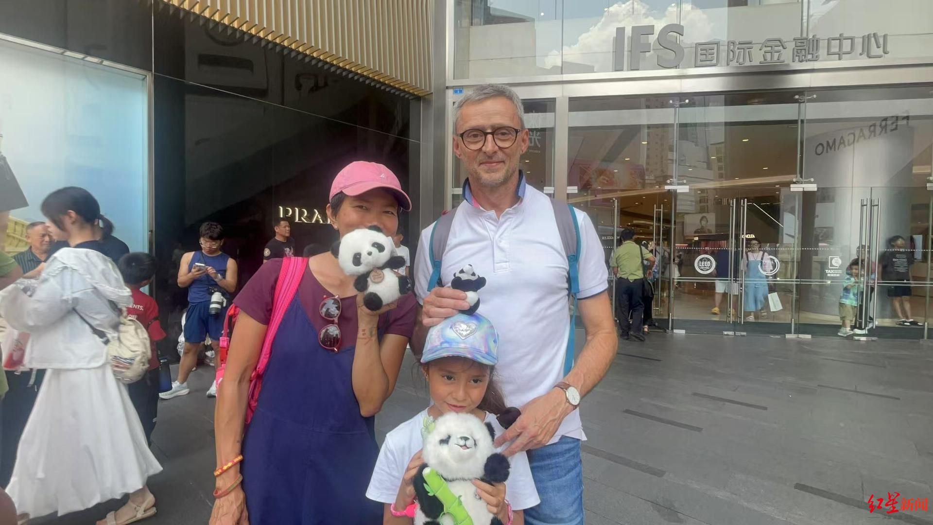 同样来成都装满行李箱的还有法国游客吉尔达斯(Gildas Menard)。“我们就是为了大熊猫而来。”7月9日,吉尔达斯一家三口第一次来成都,“专门购买了大大小小的六件大熊猫周边商品,小到大熊猫头饰,大到大熊猫玩偶,都是给我六岁女儿的礼物。”