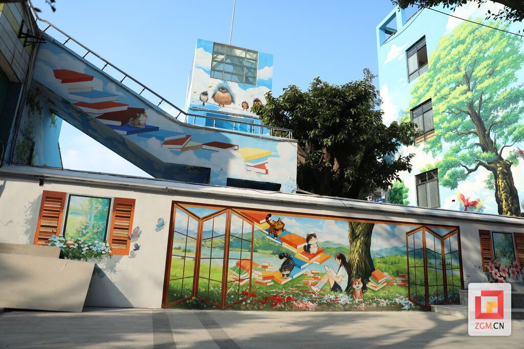 他们的画笔还延伸至校园:与贡井青杠林小学学生共绘文化墙,在汇东实验学校周边创作“知识阶梯”及“冠军之路”。其中“冠军之路”汇聚了11名冠军,包括中国奥运金牌第一人许海峰,乒乓球世界冠军孙颖莎、王楚钦,以及高敏、董超、吴艳妮等5名本土冠军。