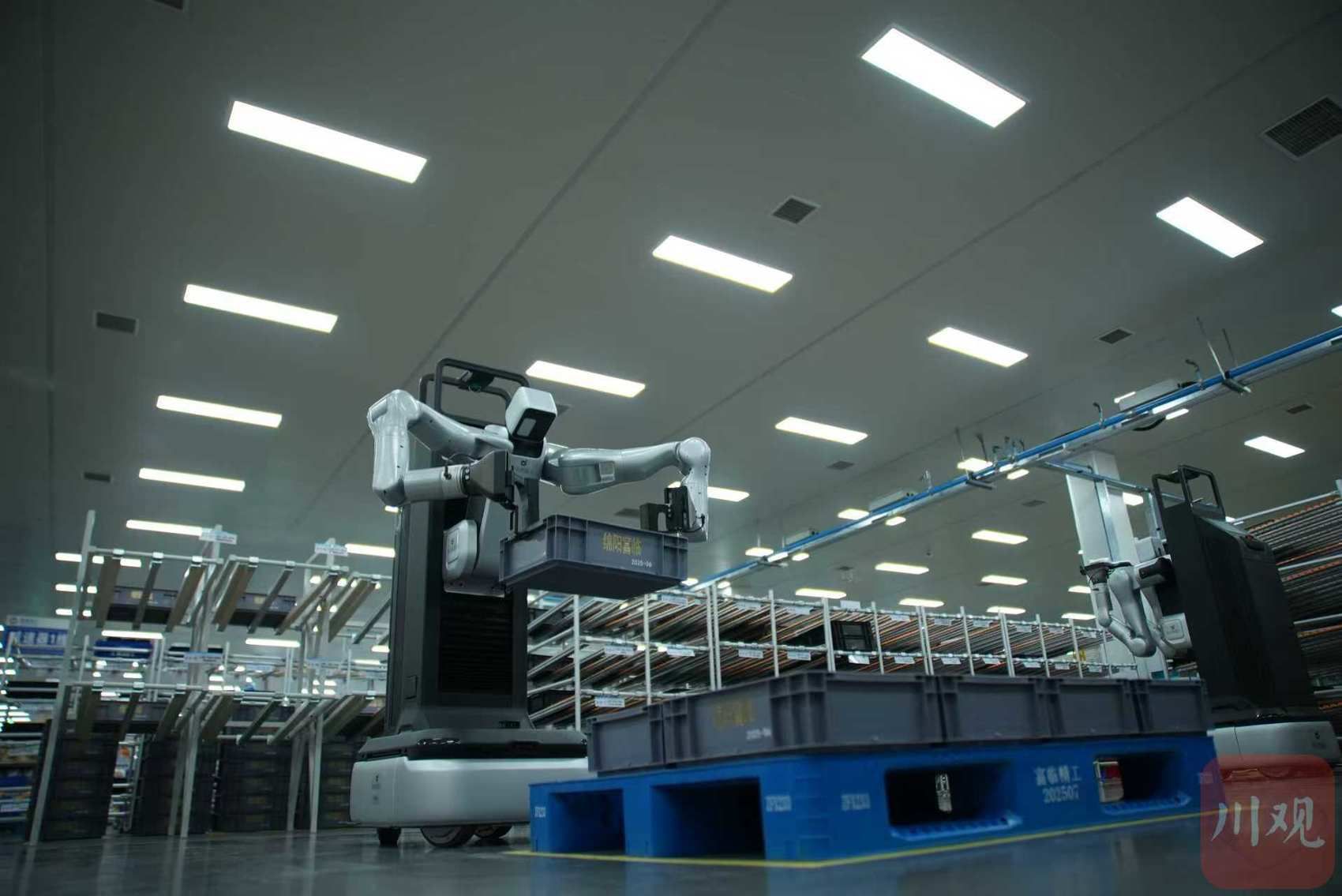 这条视频是7月9日,位于绵阳市涪城区的富临精工股份有限公司开启的一场直播活动:在生产车间内,机器人自主搬运重达15公斤的箱子,在3个小时的直播中,共搬运了800多个周转箱,全程0失误,充分展现了其在长时间、高强度、动态干扰环境下的稳定作业能力。