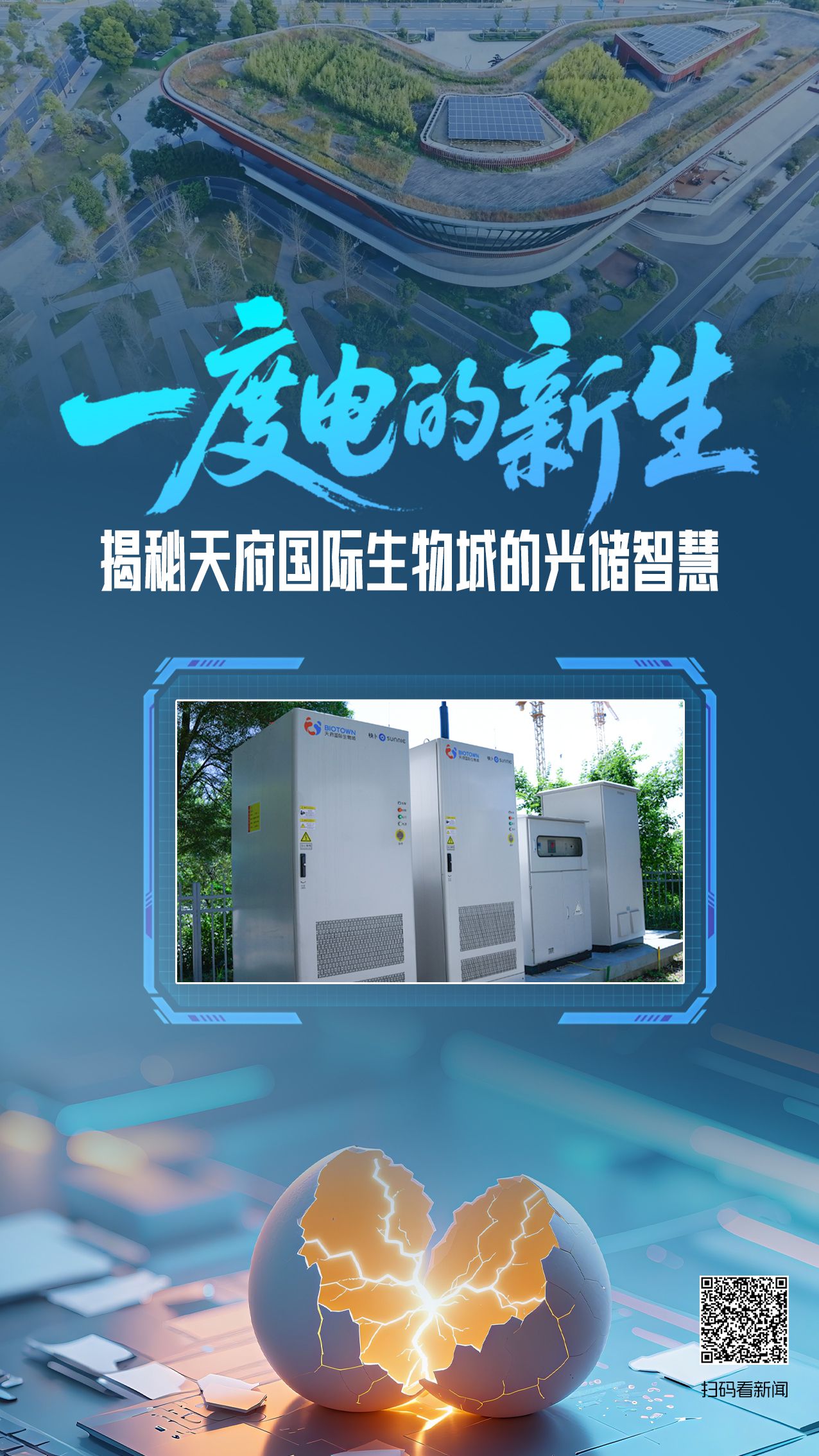 一度电,究竟是如何产生的?在传统火力发电厂,它可能意味着0.3-0.5千克标准煤的燃烧与排放。但在成都天府国际生物城,一度电的诞生却是一场“阳光变电流”的绿色转场。