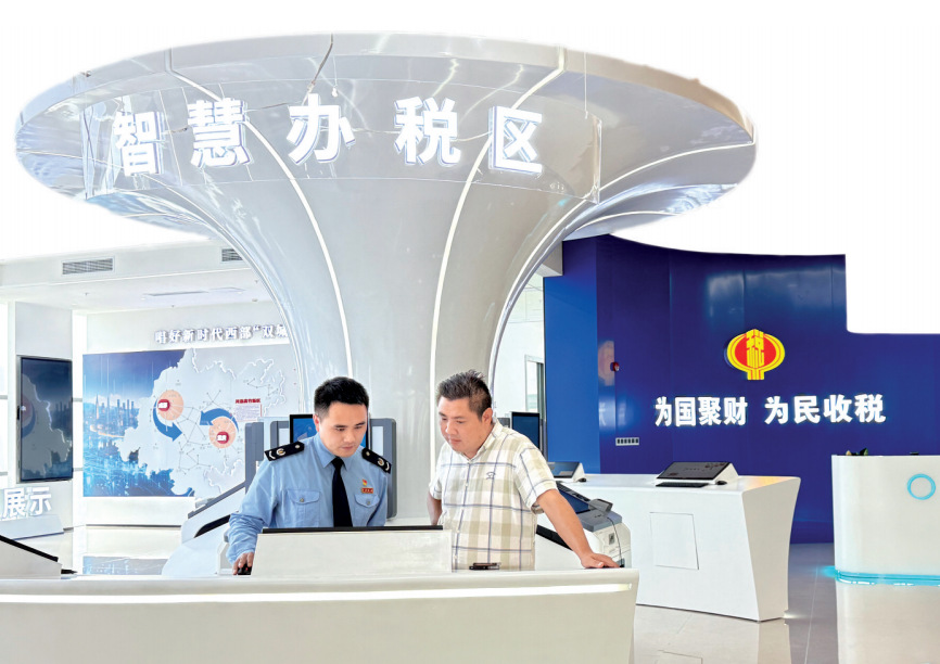 在工作人员的热情引导下,他快步走向智慧办税区。
