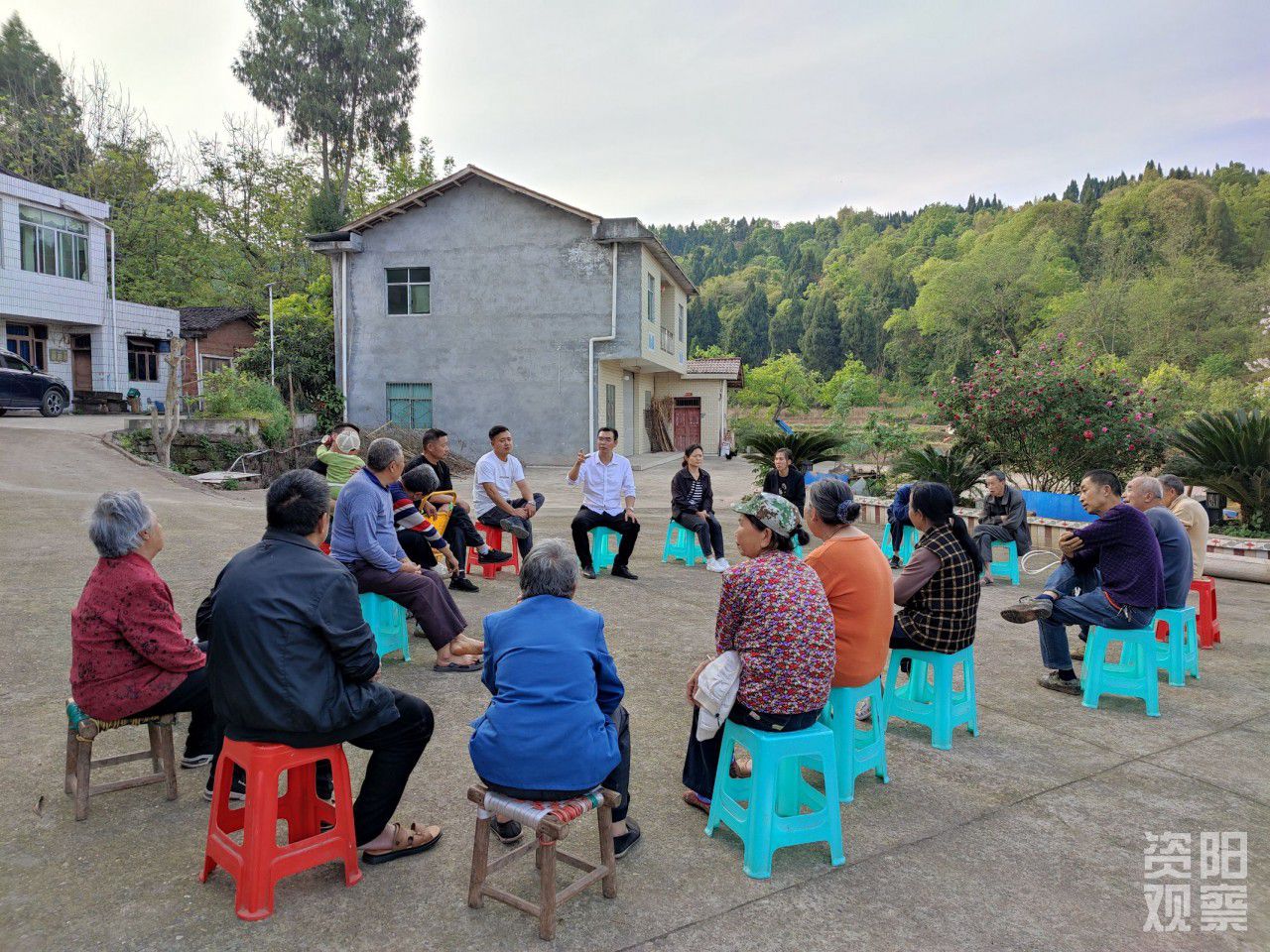 王佐洪给村民开院坝会。
