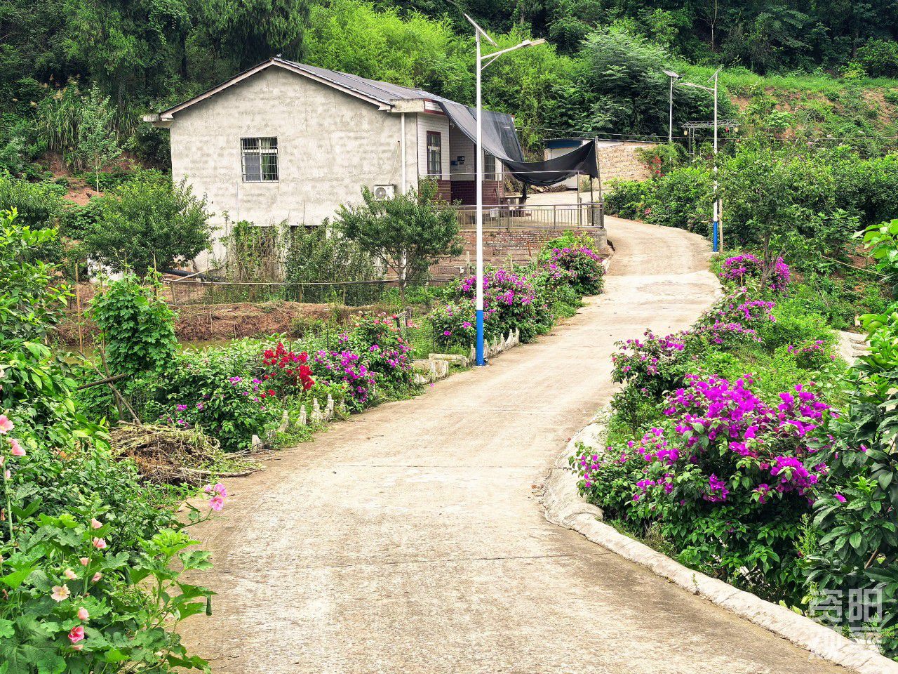村道两旁都种上了花。