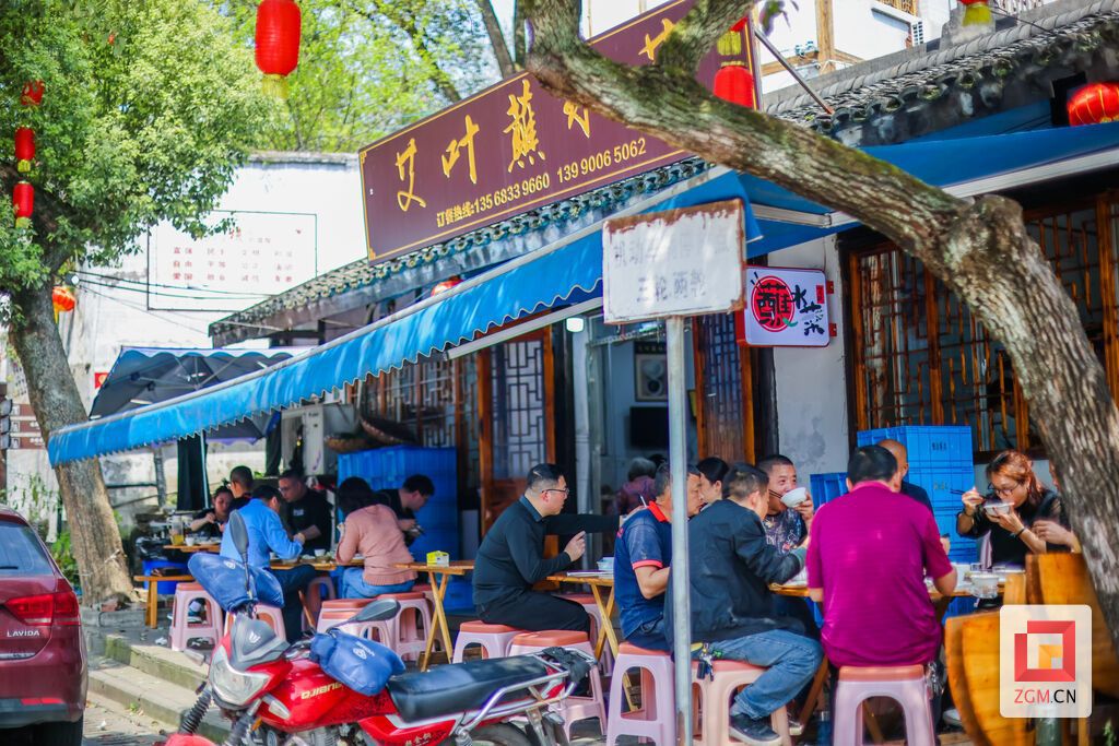 以艾叶古镇美食一条街为例,短短几百米的街巷,云集了“九九韭酒家”“艾叶滩豆花庄”“丽玲夜宵”“家会蘸水兔”等近30家餐馆食肆,以美食之名,承续着艾叶滩的辉煌。