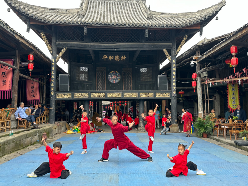 每逢周六上午,罗城古镇船形街的古戏楼前总是热闹非凡。随着一阵锣鼓声响起,一场精彩的麒麟灯表演正式拉开帷幕。十余名身着传统服饰的少年手持刀枪剑戟跃上戏台,在激昂的鼓乐声中展示着精湛的武术功底。
