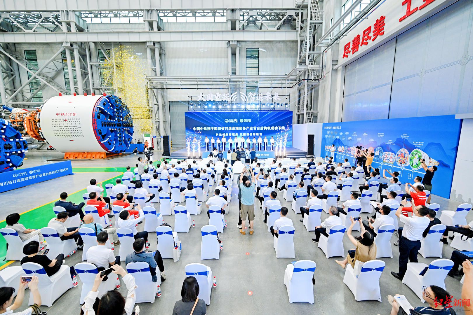 活动现场,在该制造基地完成的首台再制造盾构机“中铁502号”、大机配套等装备产品也同步亮相,展现出基地多元高端装备的制造实力。