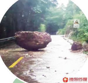 强降雨导致山体崩塌,通往当地金花集镇社区的主干道——广金路被一块巨石阻挡道路。图据受访者